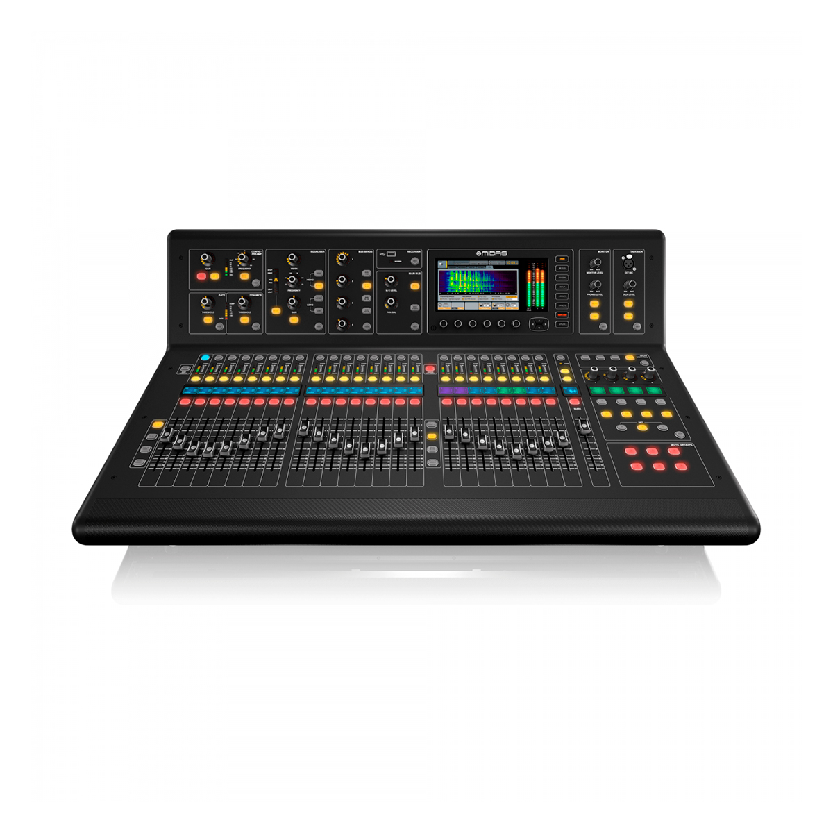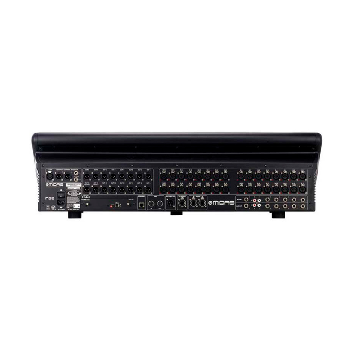 La Consola digital Midas M32 es una consola de mezclas digital de 40 canales con 32 preamplificadores Midas, 25 buses de mezcla, 25 faders motorizados Midas Pro, más de 50 efectos integrados, pantalla TFT de 7″ e interfaz de audio USB 2.0 de 48 kHz, esta consola es una de las consolas preferidas por la gran mayoría de las bandas e ingenieros de sonido. La consola Midas M32 es perfecta tanto para mezcla de monitores como de sala.