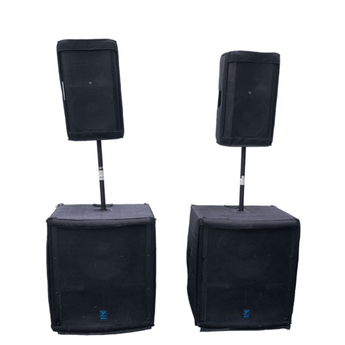 Paquete 2 bajos yorkville 18″ + 2 cabinas qsc k12(Alquiler)