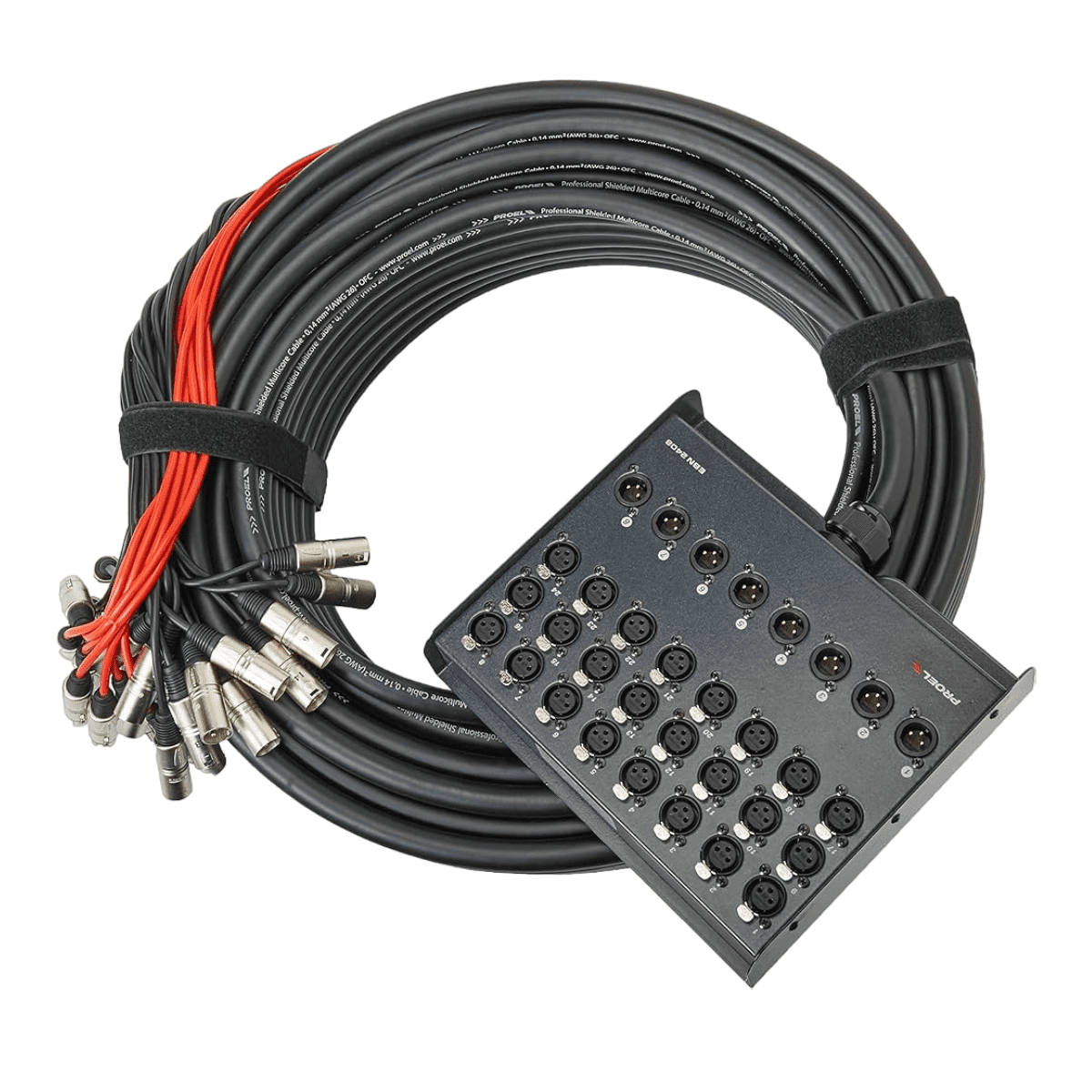 El Snake medusa Proel 32 canales x 8 salidas 30 metros caja metálica donde los conectores XLR con contactos dorados NEUTRIK de alta calidad están cableados en automático. Las terminaciones de montaje de cable están protegidas por chaquetas de PVC y cableadas con conectores metálicos de la serie PROEL XLR PRO. El cable multinúcleo serie CMF, con conexión a tierra de contacto, se utiliza para las conexiones. Configuraciones disponibles desde 8 hasta 40 canales en diferentes longitudes. Experimenta la excelencia en la gestión de audio con nuestro Snake Medusa Proel. Diseñado para profesionales exigentes, este sistema proporciona una conectividad sin igual y una calidad de sonido excepcional en cualquier entorno, es ideal para eventos en vivo, estudios de grabación y aplicaciones de instalación profesional.